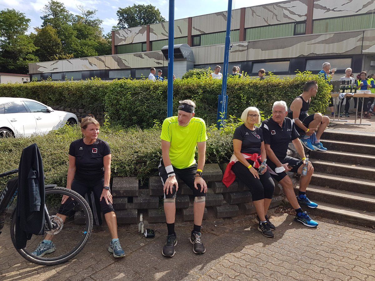 Mit einem Lächeln im Gesicht waren nach genau einer Stunde alle wieder zurück im Ziel, niemand hatte sich überanstrengt oder zu viel zugemutet. Nach dem sich alle ein bisschen erfrischt hatten, wurden Ehrungen vorgenommen: Die größte Teilnehmergruppe stellten die Wanderfreunde Differten und wurden dafür mit reichlich Sekt belohnt. Die zweitgrößte Gruppe stellte der TV Rußhütte, dritter wurde der Kneippverein Niedtal. Älteste Teilnehmerin war Brigitte Kiefer von den Wanderfalken, und unser Urgestein Horst Hepp war der älteste Herr. Nils Ressing war der jüngste Junge, und die Zwillinge Emma und Leni Reichert mussten sich als jüngste teilnehmende Mädchen den Preis schwesterlich teilen. Noch lange nach dem Zieleinlauf standen viele in kleinen Gruppen herum, fachsimpelten, erzählten von ihren letzten Läufen oder schmiedeten Pläne für die im Herbst noch zu erwartenden Veranstaltungen.