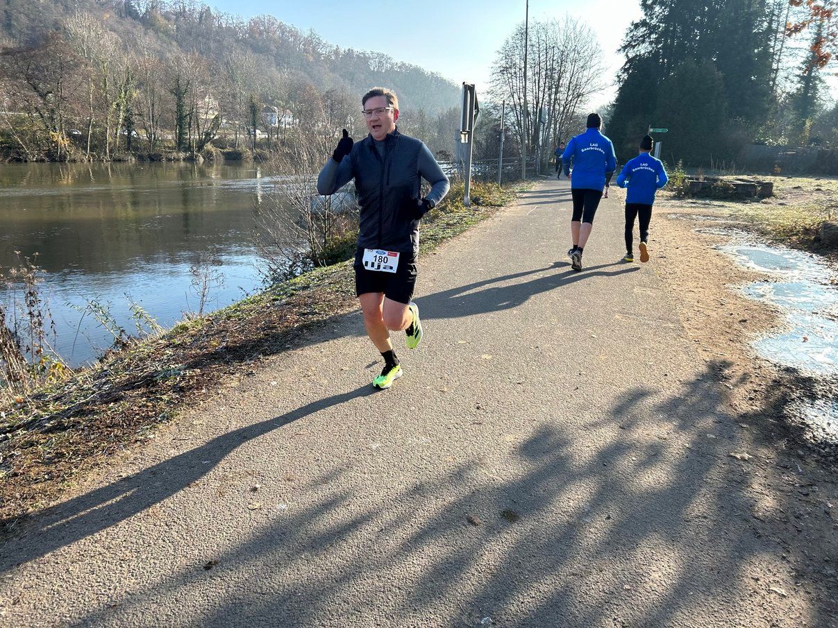Lukas Kirschweng und Jessica Röthel waren auf dem „Brian-Trail“ unterwegs: 14 Kilometer bei rund 500 Höhenmetern. Lukas lief nach 1:34:50 Stunden und Jessica nach etwas über 2 Stunden durch den weihnachtlich geschmückten Zielbogen in Waldhölzbach. Kommentar von Lukas nach dem Lauf: „Insgesamt wieder ein typischer Hartfüßler: technisch sehr anspruchsvoll bei oftmals steilen Anstiegen bzw. Gefällen. Die Strecke hat den Namen Trail absolut verdient“