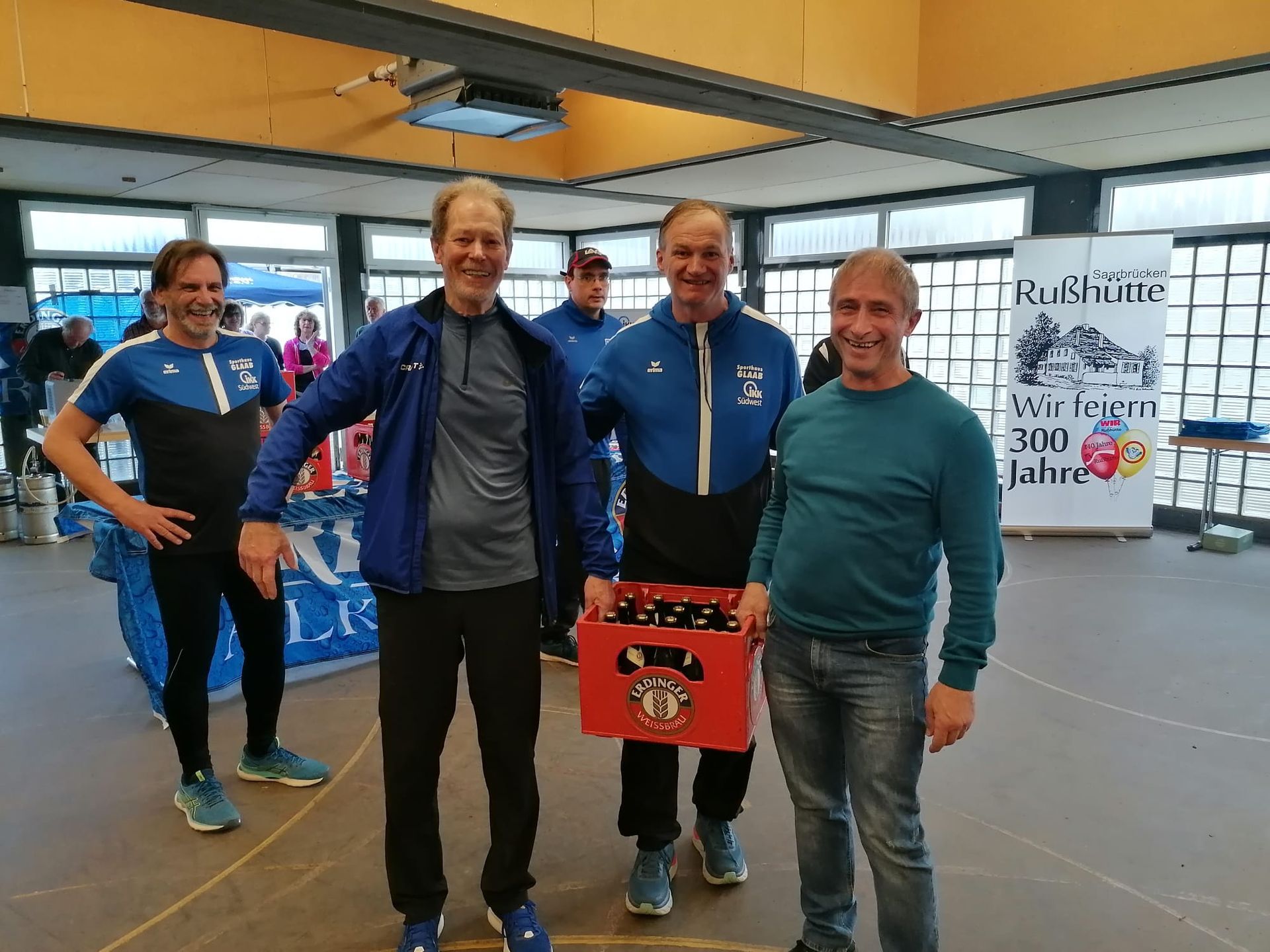 Mit dabei war eine Mannschaft von den Bisttal-Runners in der AK M65 und darüber: Wochenlang vorher Hatten Martin Heckmann, Hans Günter Jakobs und Gerhard Jungmann auf das Ereignis hin trainiert. Dass sie in den Einzelwertungen bei der bundesweiten, teils professionellen Konkurrenz keine Chance auf einen vorderen Platz hatten, war ihnen von vorneherein klar; aber in der Mannschaftswertung, so ihr Kalkül, wollten sie das Saarland und die Bisttal-Runners würdig vertreten. Und das gelang ihnen überraschend gut: Hinter den gesetzten Teams von SVG Ruhstorf/Rott, LG Allgäu und RSV Raadetal belegten sie den vierten Platz ! Ein toller Erfolg für unseren Verein!